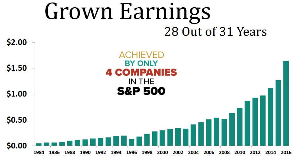過去31年間で増益の年が28年もあります。本当にきれいな右肩あがりの利益成長ですね。