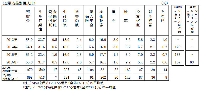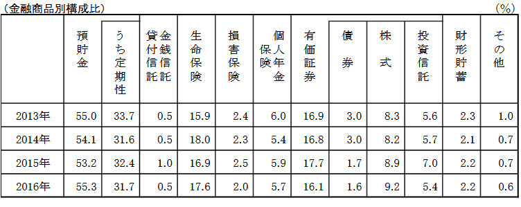 2016年の家計の金融行動に関する世論調査が発表されていますので、その調査結果を用いて調べてみます。