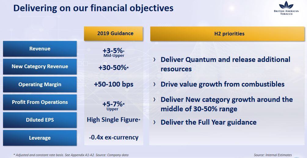 ガイダンスではBTIの2019年通期業績は、緩やかな成長が予想されます。