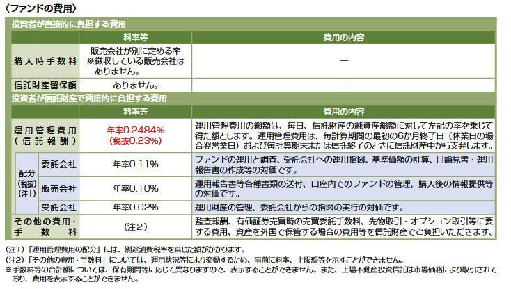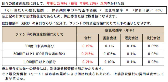 信託報酬は、年率0.2268%(税抜 年率0.21%)です。