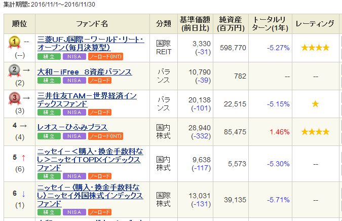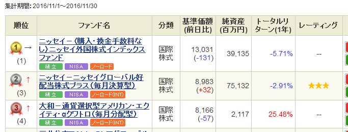 楽天証券とSBI証券でのランキングを調べてみましたが、どちらの証券会社でも上位にランキングされています。(2016/11/1~2016/11/30)