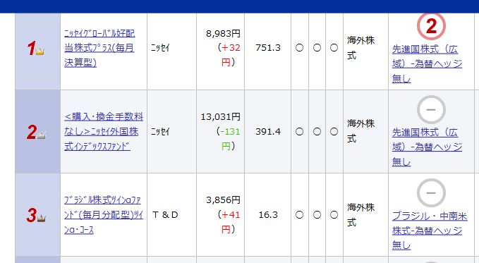 となっていました。どの投資信託も個人投資家には人気のものですね。