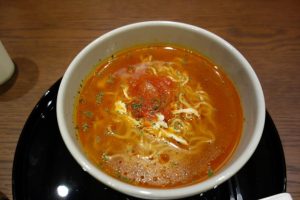 私はトマトラーメンを選びました。ニンニクが効いていてパスタのような味。