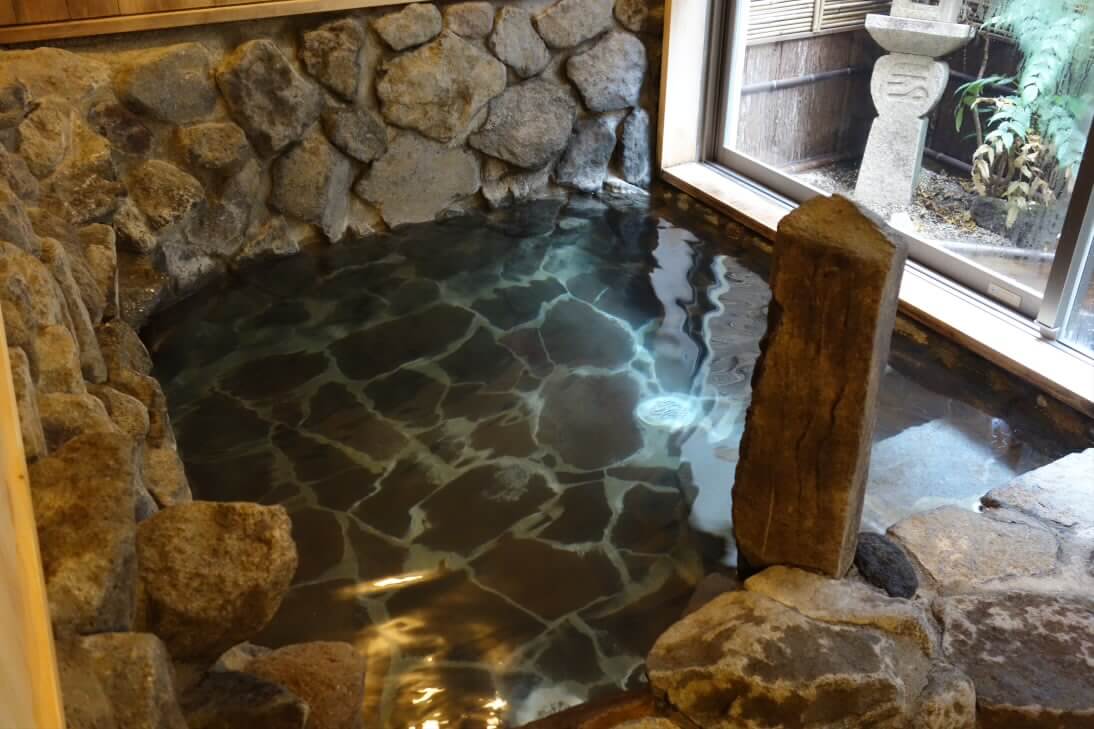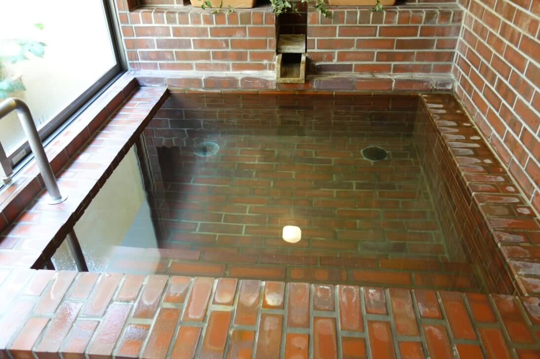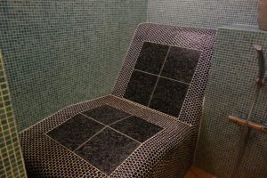 色が変わっていく不思議なモザイクタイル風呂。こちらは温泉ではありません。