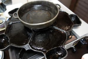 野菜やお肉をこのお鍋(鉄板)で焼いたり、しゃぶしゃぶしたりします。