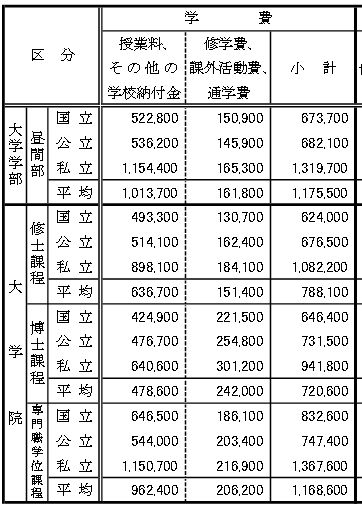 文部科学省の発表している調査結果から、教育費の平均はわかりました。