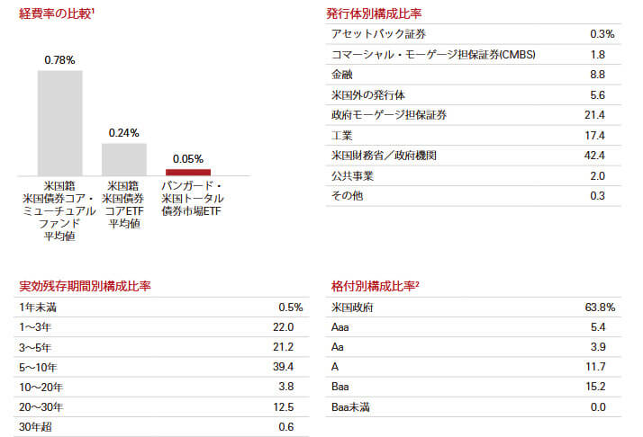 米国債券を中心とした債券ETFなので安定性はありますし、経費率も0.05%と激安なのです。