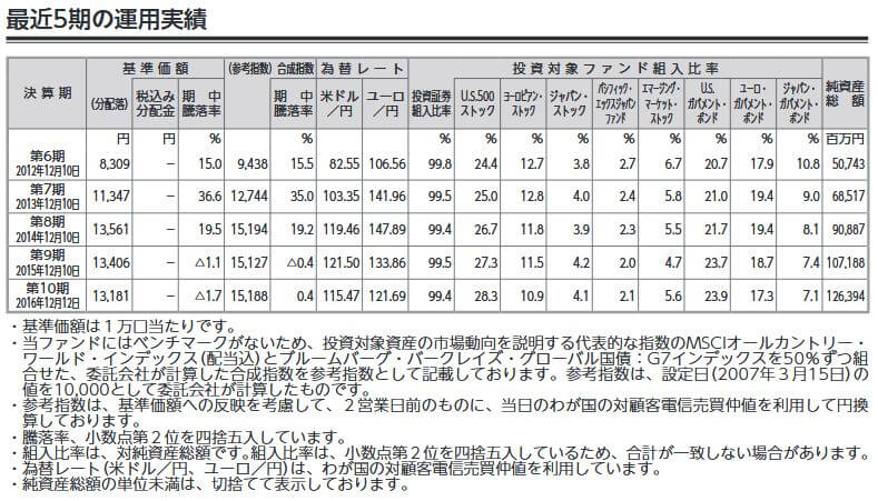 その合成指数には若干及ばないけれど、純資産総額も順調に増えているし、世界経済の成長とともにファンドも成長しているので、特に問題はないと思う。