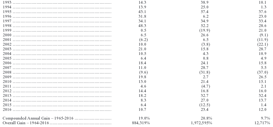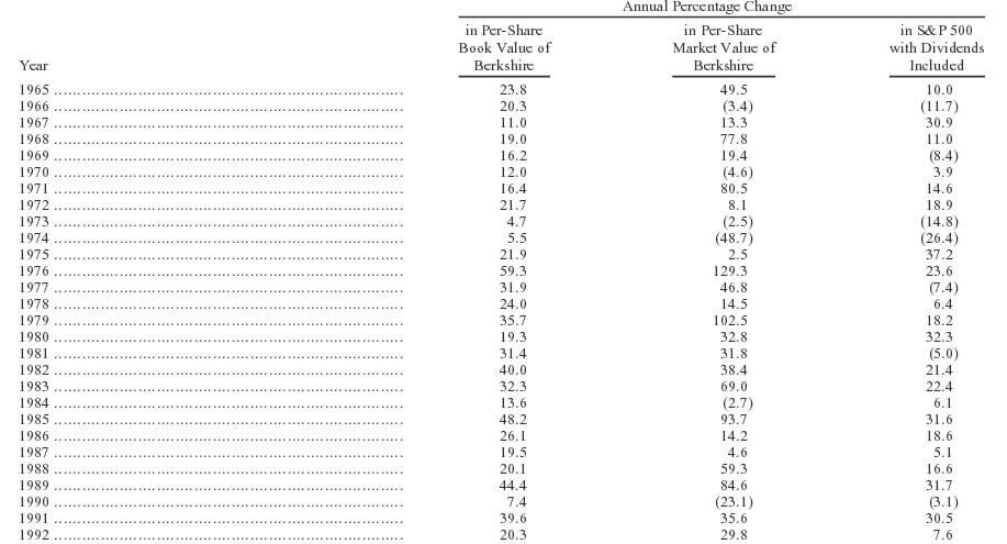 株主への手紙の最初にS&P500とバークシャーのパフォーマンスが掲載されているのだけど、やっぱりバークシャーは凄いです。